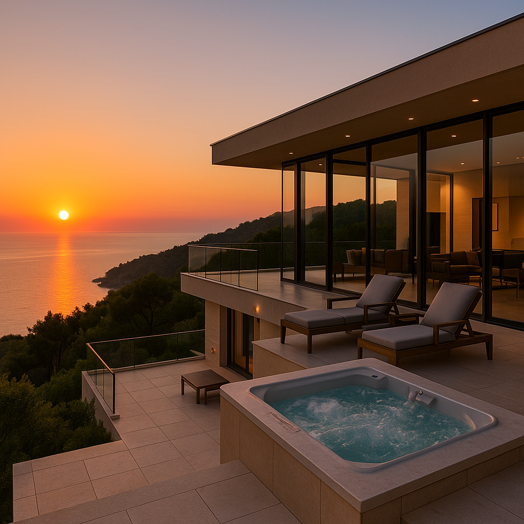 Представьте утро: вы просыпаетесь, открываете шторы и видите бескрайнее море, солнце играет на волнах, а лёгкий бриз приносит свежий воздух с гор. На вашей террасе стоит завтрак от личного шеф-повара, а бассейн сверкает под первыми лучами солнца.